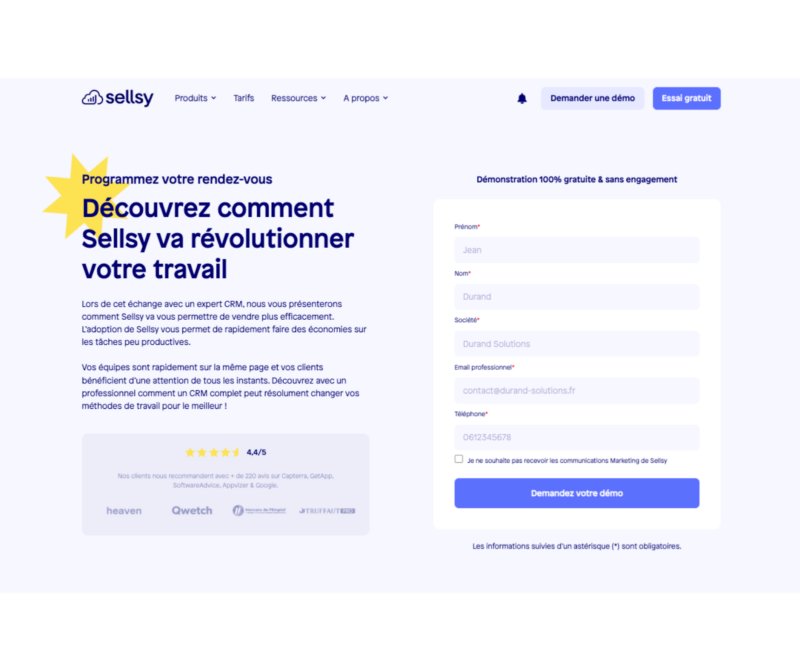 - Des éléments de réassurance, soigneusement répartis au fil de la page.