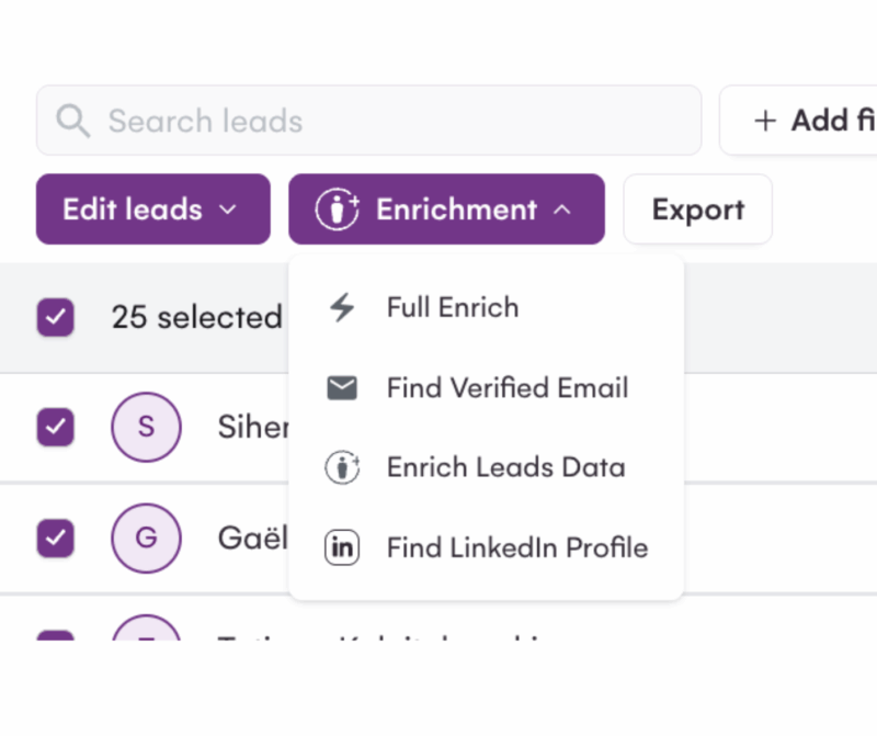Notez que l’ enrichissement des leads est possible via leurs outils “Email Finder” et “Phone finder”.