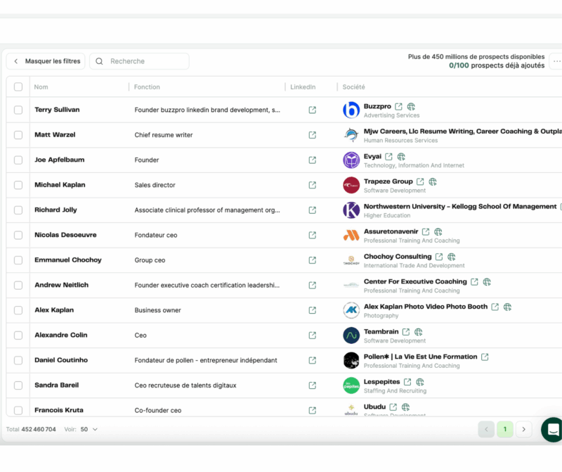 - à partir de leur base de données : elle comporte près d’un milliard de prospects, avec des filtres similaires à Sales Navigator ;